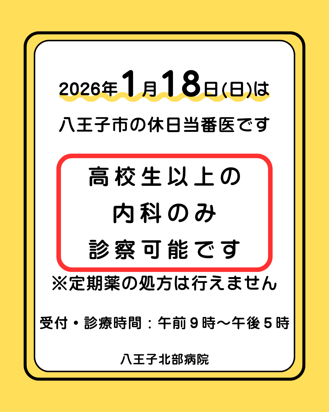 1月18日(日)休日診療のお知らせ